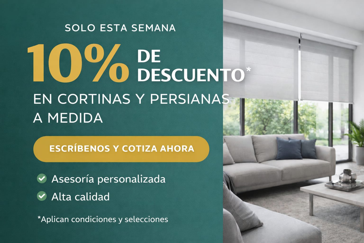 Ofrecemos envíos gratis a nivel nacional en todas nuestras cortinas y persianas. Compra de manera segura en nuestra tienda en línea y elige entre persianas motorizadas o cortinas tradicionales, personalizadas a tu gusto. Disfruta de una experiencia de compra cómoda, con productos de alta calidad y entrega rápida directamente en tu puerta.